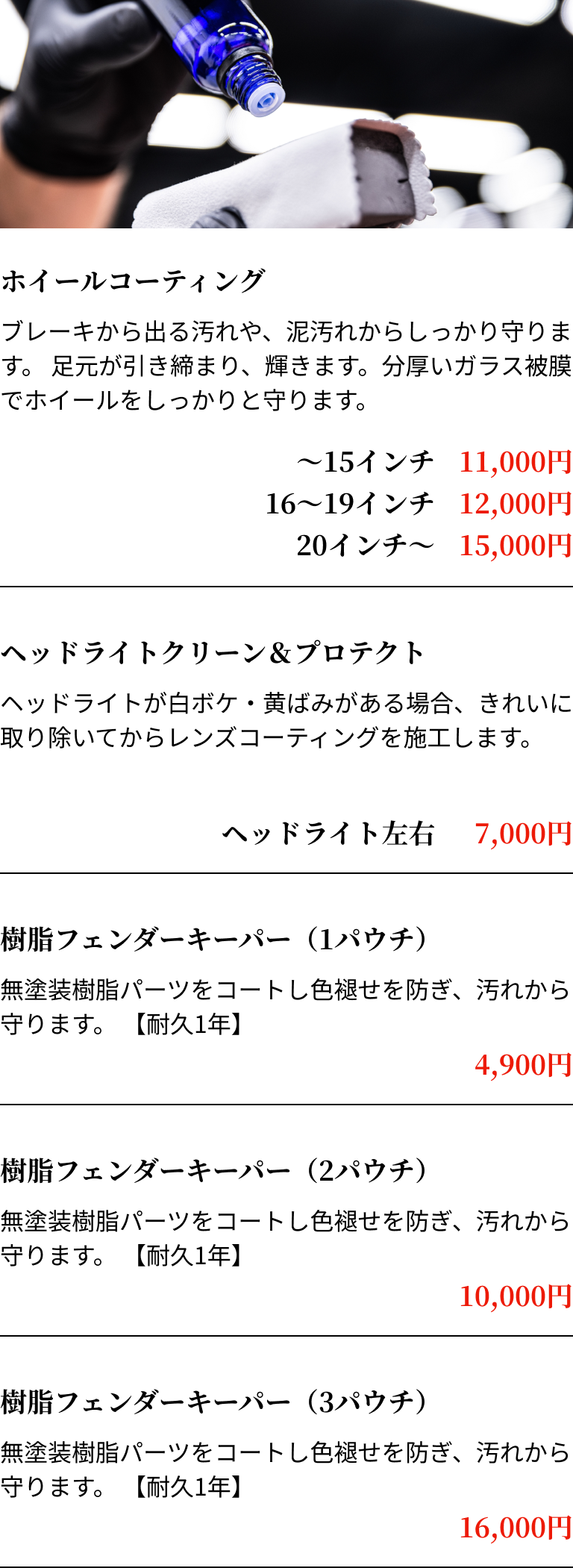 - コーティングは、車の納車直後に行うのが最適です。非常に微細な分子で表面を覆います。新しい塗装の場合でも、通気性が高いため、乾燥中に発生するガスがコーティング後も問題なく放出されます。キーパーコーティングは、他のガラスコーティングによく含まれるキシレンなどの有機溶剤を使用しておらず、塗装にダメージを与えることがないので安心してお任せください。
